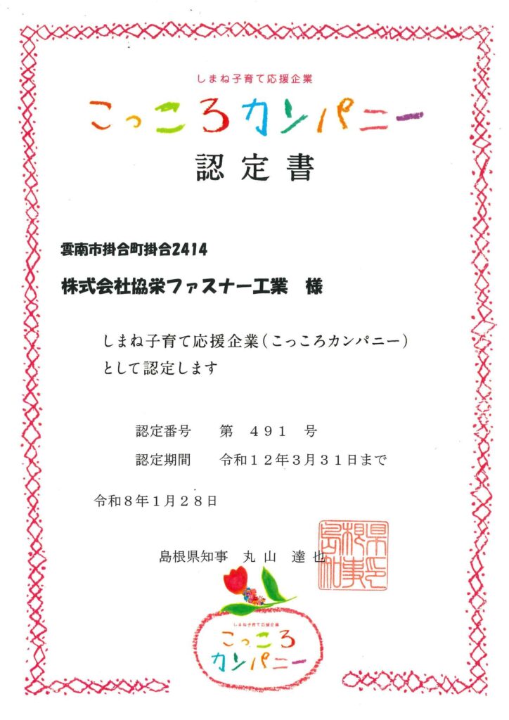 認定期間満了に伴い、弊社の子育て応援制度が再度評価され、こっころカンパニーの再認定を受けました。